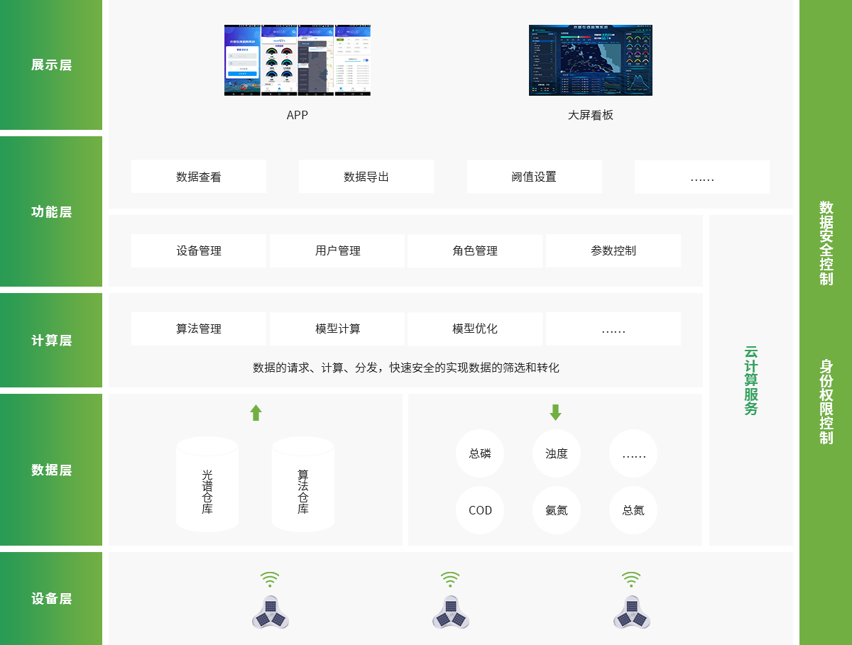 基于物聯(lián)網(wǎng)與云計(jì)算技術(shù)自主研發(fā)的光譜大數(shù)據(jù)處理與分析平臺(tái)。智能光譜儀數(shù)據(jù)通過無線傳輸信號(hào)將采集的光譜數(shù)據(jù)實(shí)時(shí)上傳至平臺(tái),平臺(tái)進(jìn)行解算分析后,將結(jié)果自動(dòng)反饋回展示平臺(tái)進(jìn)行展示,客戶可以通過展示平臺(tái)或手機(jī)APP進(jìn)行查看。